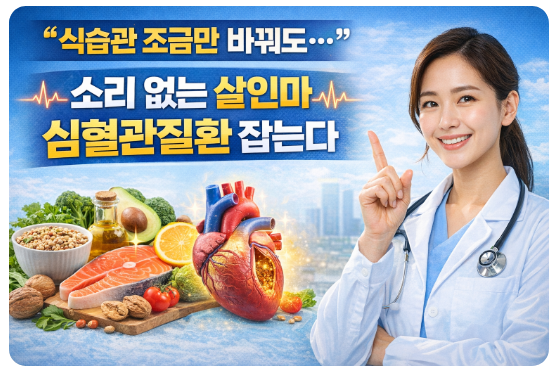 심혈관질환은 전 세계 사망 원인 1위로 꼽히는 대표적인 질환입니다. 국내에서도 암 다음으로 많은 사망자를 내고 있지만, 뚜렷한 증상 없이 진행되는 경우가 많아 **‘소리 없는 살인마’**라 불립니다.