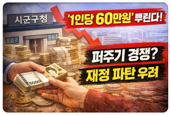 일부 지역에서는 1인당 최대 60만 원까지 현금성 지원을 예고했지만, 지방재정 악화와 선심성 행정이라는 비판도 동시에 커지고 있습니다.