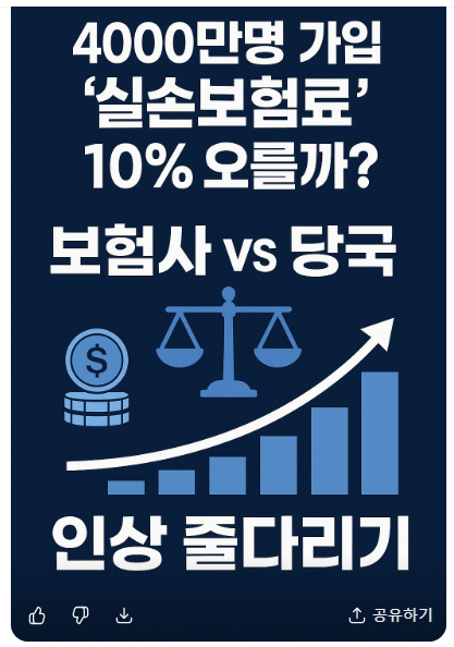 - 보험사 주장: 손해율이 110%대 후반 → 보험료 10% 이상 인상 필요