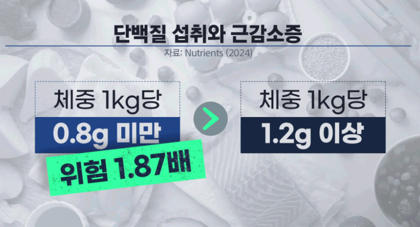 단국대 연구에 따르면, 체중 1kg당 단백질을 0.8g 미만 섭취하는 노인은