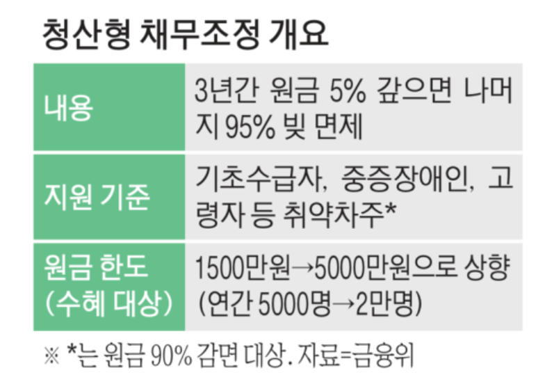 취약계층이 원금의 5%만 3년간 갚으면 나머지 빚을 전액 면제받을 수 있는