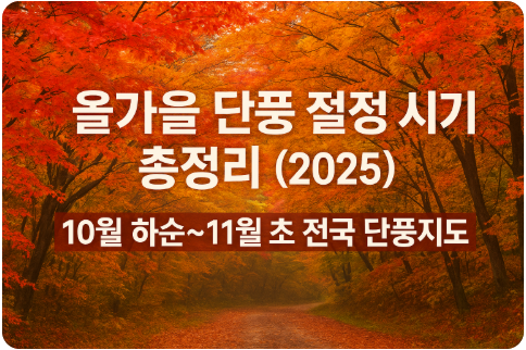 2025년 가을 단풍 절정 시기 공개! 산림청 예측에 따르면 10월 하순~11월 초 전국이 물들 예정. 지역별 단풍 명소와 여행 팁 확인하세요.