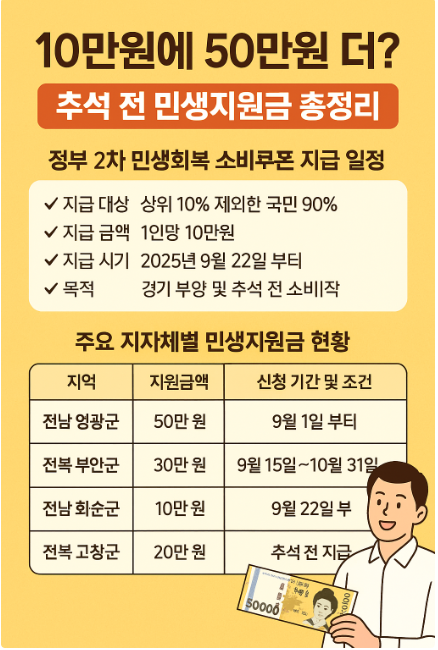 | 전남 영광군 | 50만 원 | 9월 1일부터 신청, 군민 1인당 지급 | 설에도 동일 규모 지급 이력 있음 |