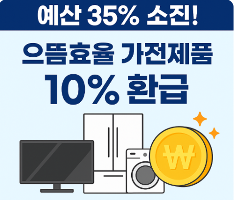 예산이 빠르게 소진 중인 으뜸효율 가전제품 10% 환급사업은 가전 교체를 고민 중이라면 놓치기 아까운 절호의 기회입니다.