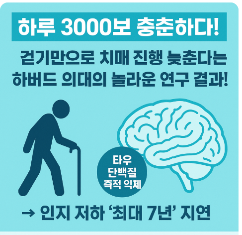 하루 3000보 걷기만으로 알츠하이머 진행이 늦춰진다는 하버드 의대의 연구 결과가 공개됐다. 운동이 뇌 단백질 축적을 막는 과학적 근거를 살펴보자.